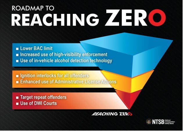 The NTSB recently released Reaching Zero: Actions to Eliminate Alcohol-Impaired Driving, a safety report that outlines the board’s findings from a year-long effort to prevent substance and alcohol impaired driving. According to the report, the legal limit of .08 in most states in the US and Canada is the highest in the world. Most countries including South American and European countries have a limit of .05 or lower. The board also reported that about 1 person is killed every hour by an impaired driver. The goal of the Reaching Zero initiative is to lower the number of DWI deaths, accidents and injuries.
